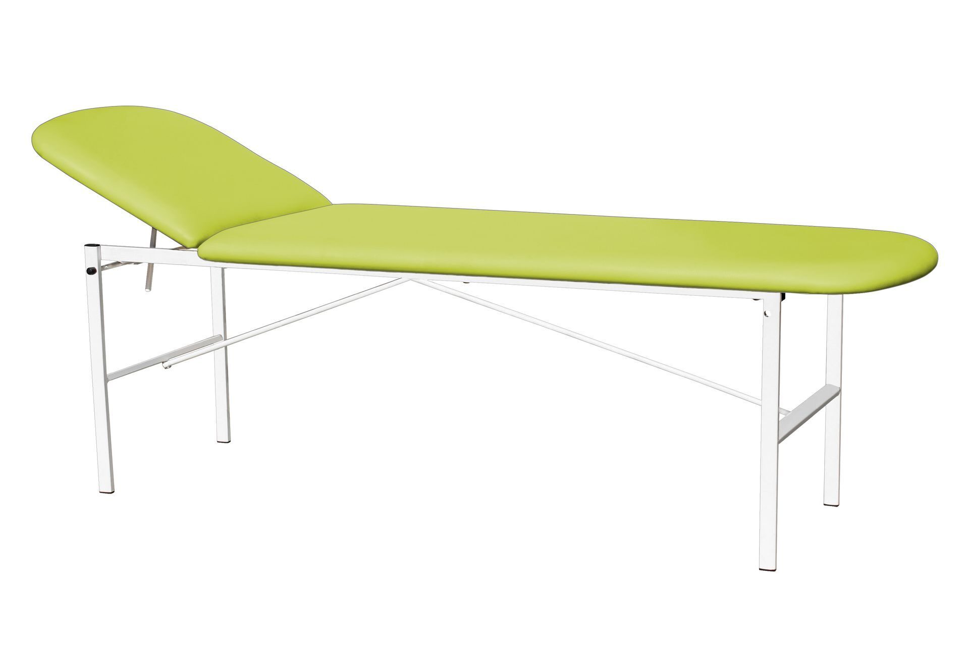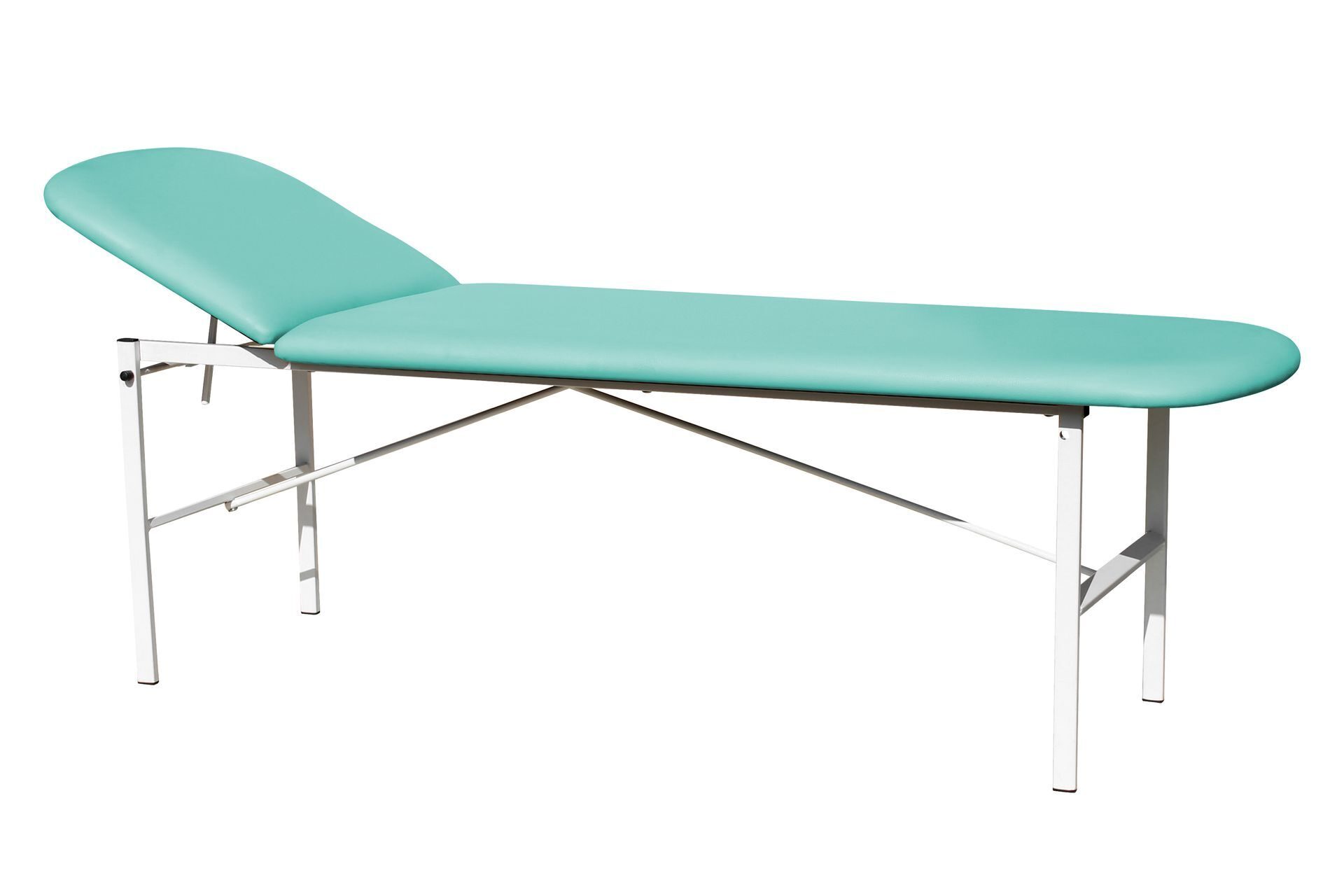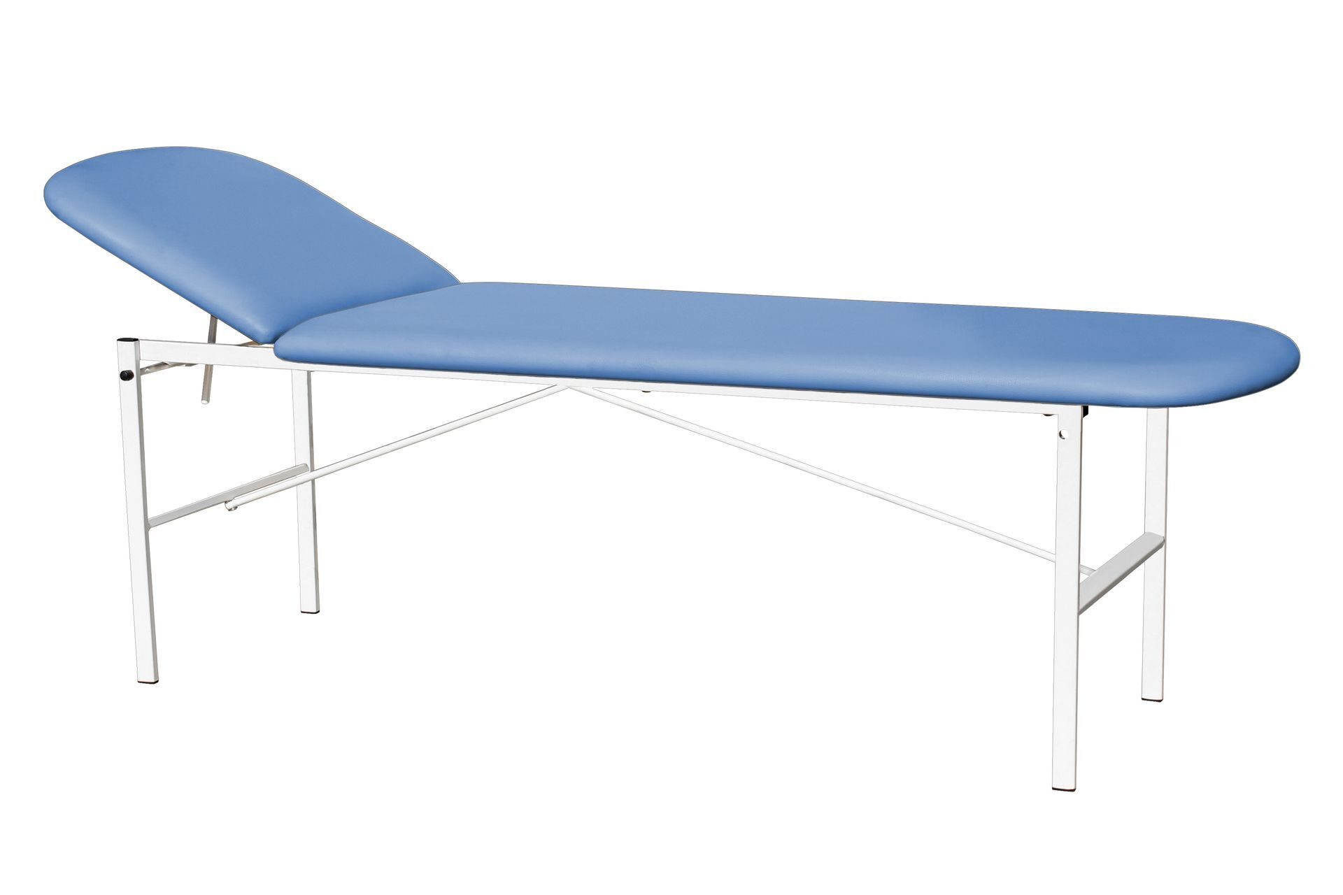 Кушетка для осмотра модели К02 имеет бесступенчатый подъёмный механизм изголовья - надёжный клиновый упор