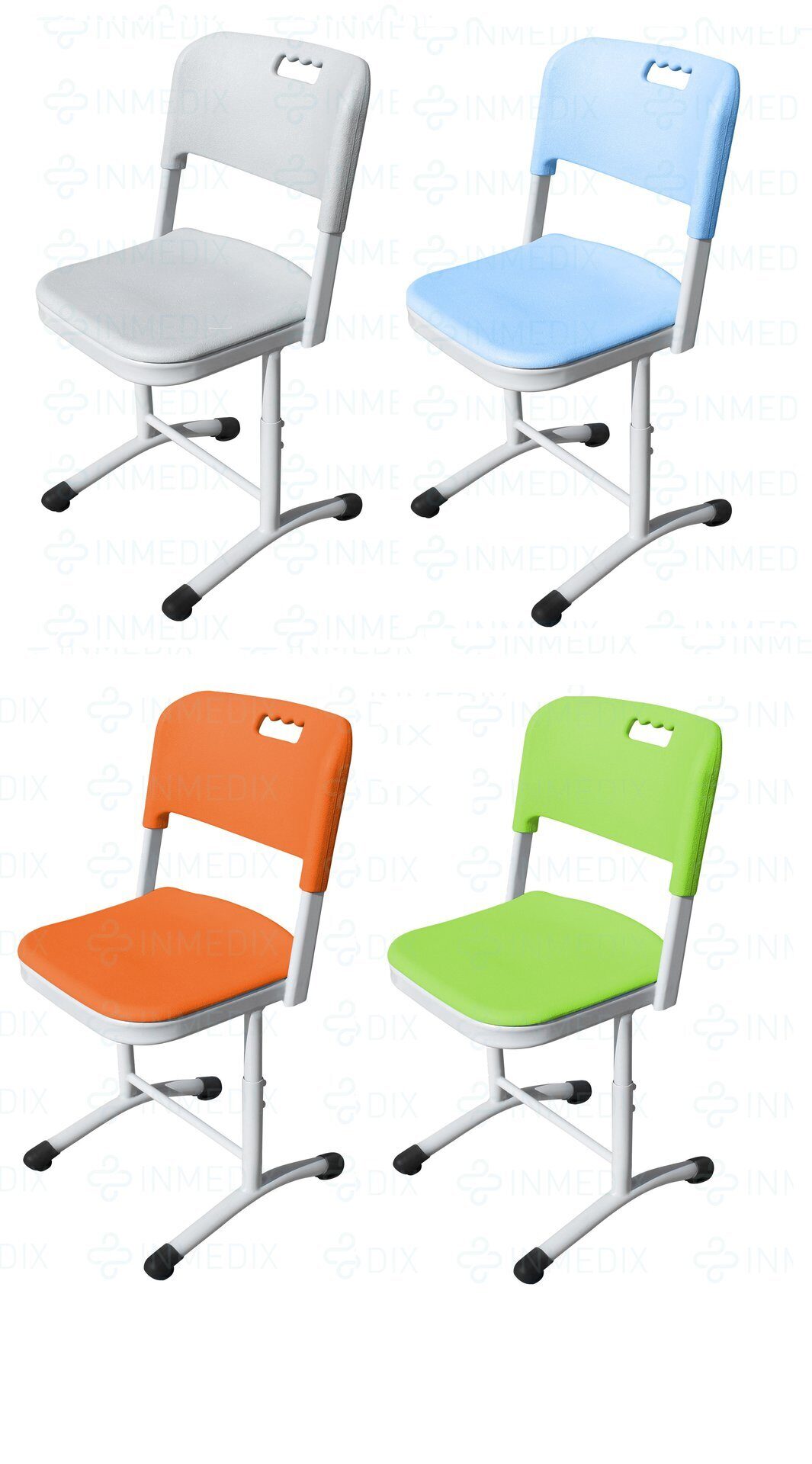 Спинка и сиденье сделаны из утолщённого антивандального пластика. Пластиковые сиденья и спинка имеют эргономичную форму очень удобно сидеть, а также снабжены отверстиями для отвода воздуха ( для вентиляции). Поверхность пластика матовая с небольшим рельефом - не будет видно небольших повреждений во время эксплуатации. На спинке сделано специальное отверстие для руки, чтобы удобно было передвигать или переносить стул.